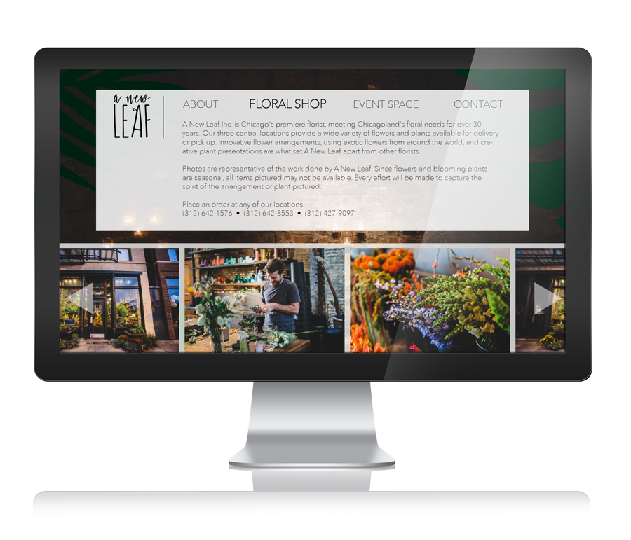When given the challenge of this re-brand, I felt A New Leaf was most in need of a visual brand story to emphasize clarity in their business model. I wanted to accomplish an identity focused on their contemporary event space and creative floral shop.