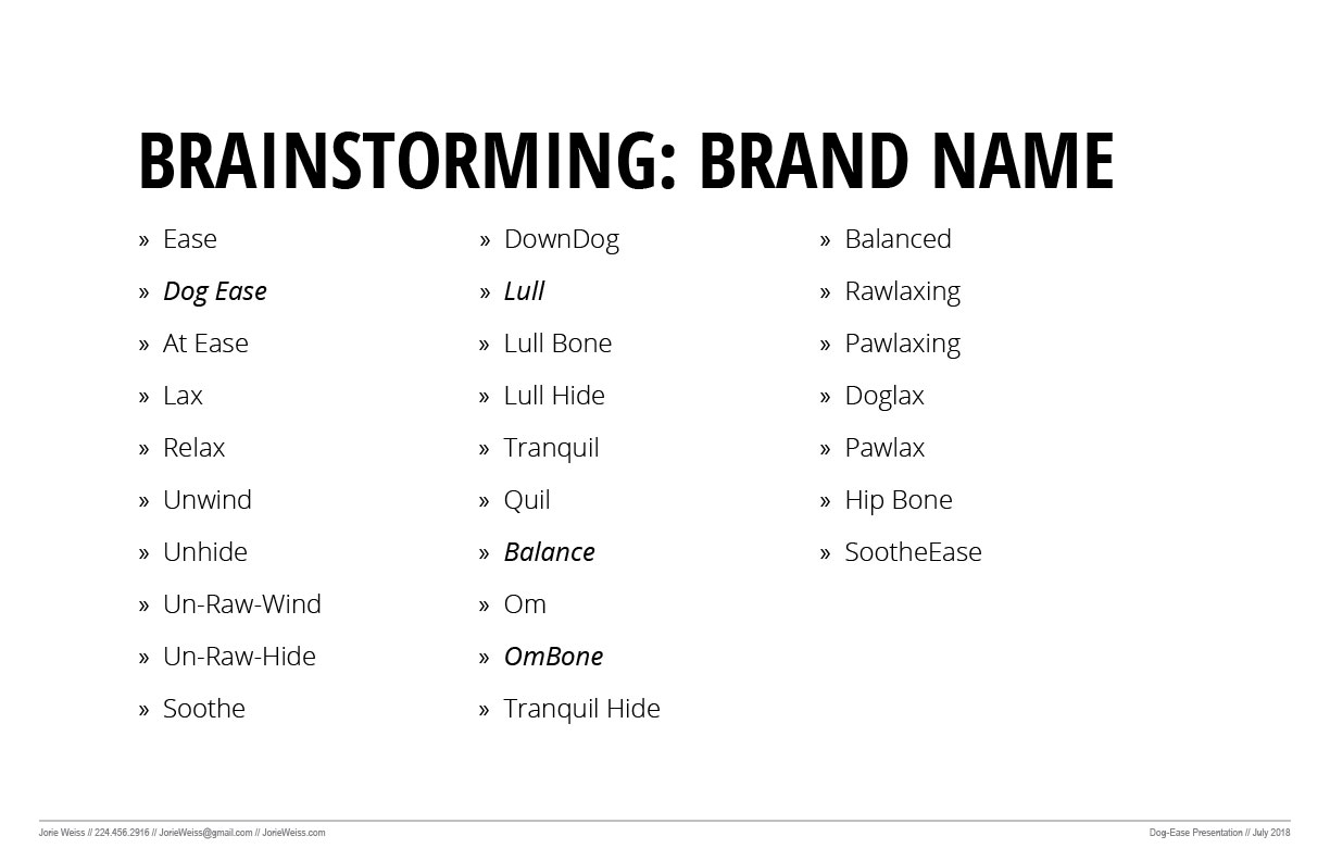 The following is an example of my work under immense time constraints. I was given the ability to put a bid in for a project opportunity, with only one-day turn-around. The ask was for a logo and possibly tag line for a Private Label Rawhide company. I wanted to show my full range of branding capabilities so I delivered to them a full presentation displaying all aspects of the initial creative process.