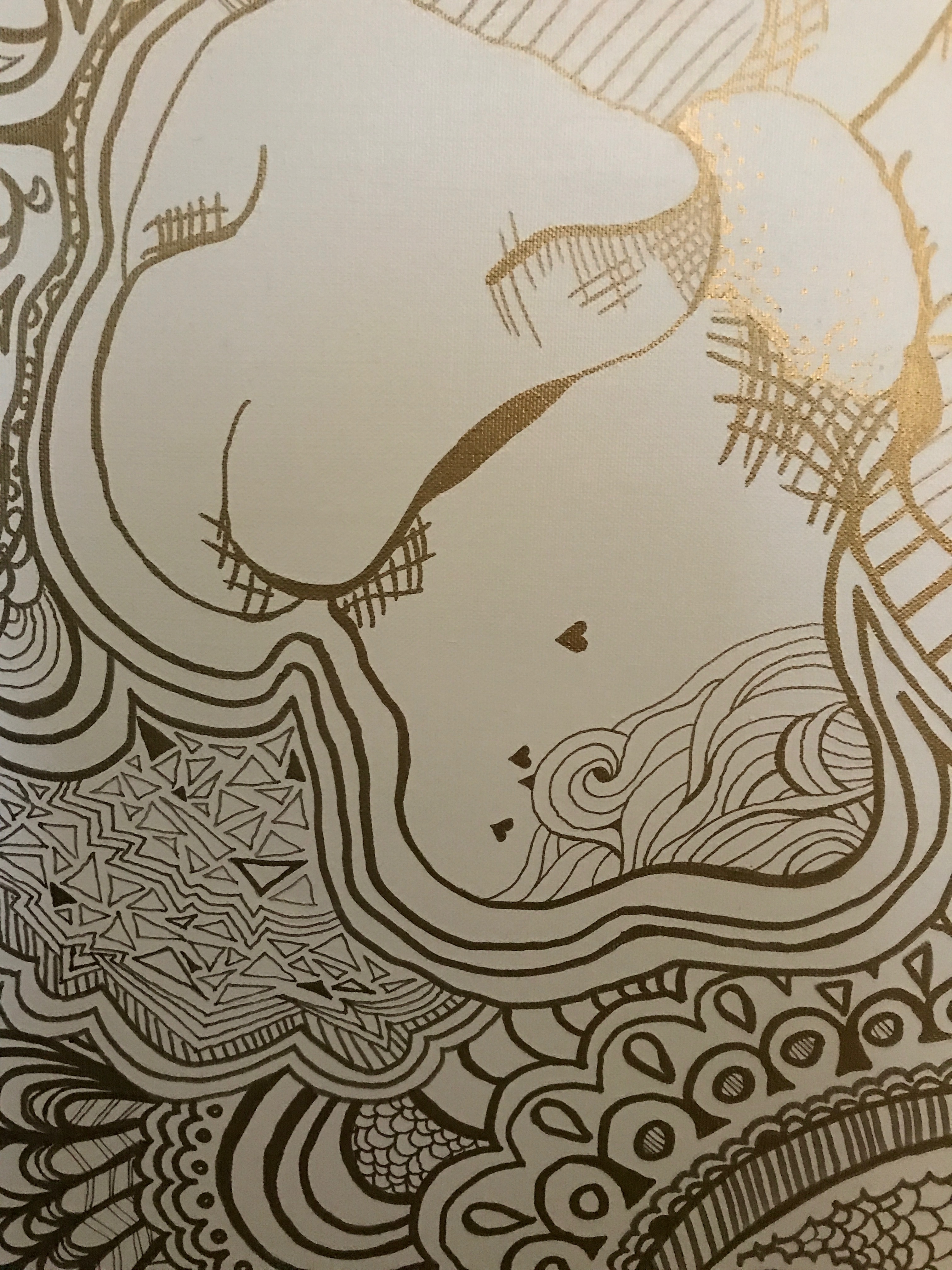 I used to watch my mother doodle on paper as she chatted on the phone catching up with her girlfriends. She would make these repetitive shapes, and go over them over and over making multiple lines and multiple shapes. I found a beauty in this rhythm and may have taken this as a way to relax as I entered high school making these mindless repetitive doodles all over my hand-outs. As I studied for my first undergrad degree, in Fine Arts, I challenged myself to bring my juvenile doodle to an elegant and fine arts standards. Larger scale, the better!