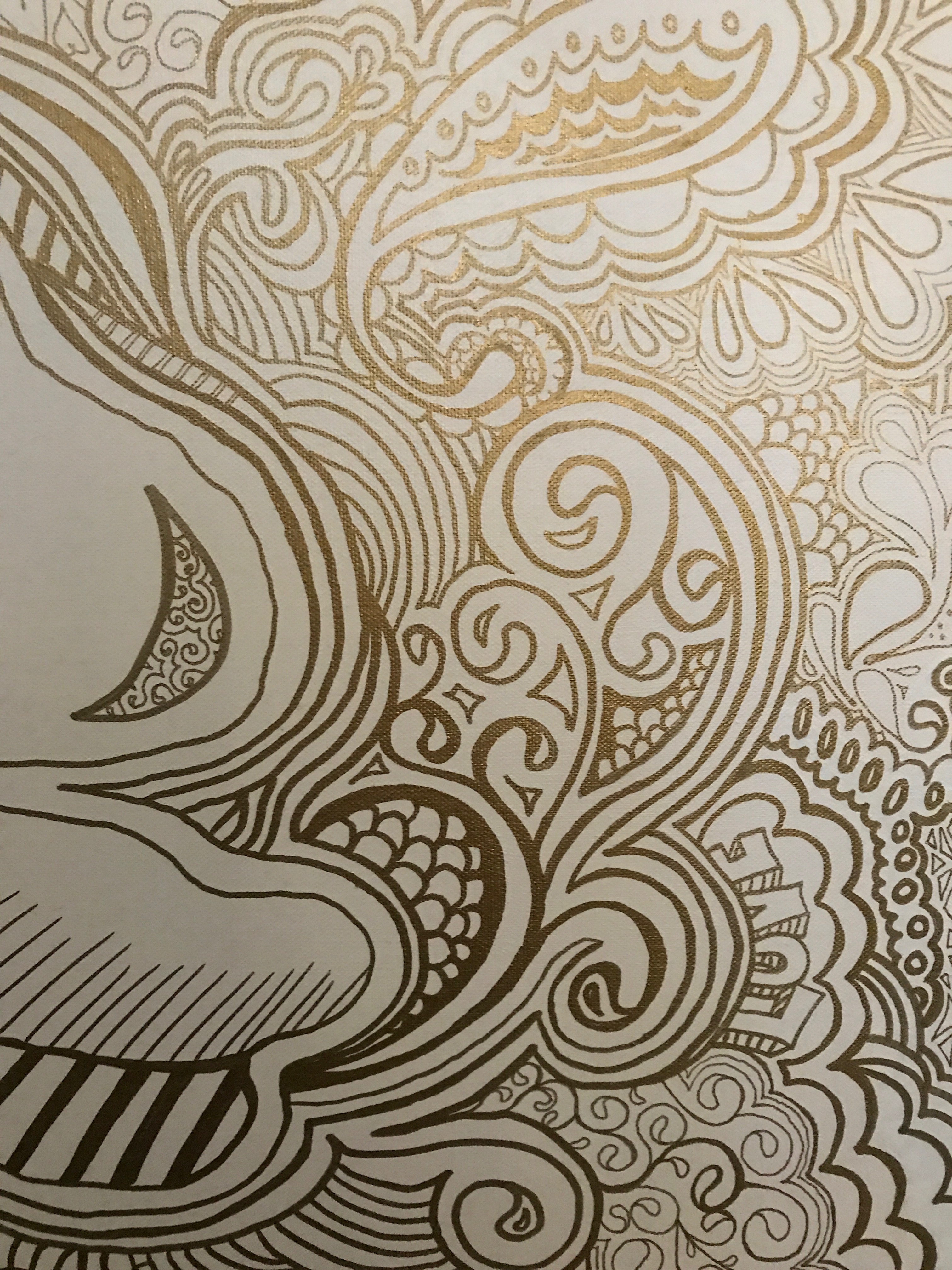 Each piece took me multiple hours to complete over the course of weeks. Creating an interesting blend of doodle style and mashup, depending on my current mood and what I was escaping in my zen doodle meditation.