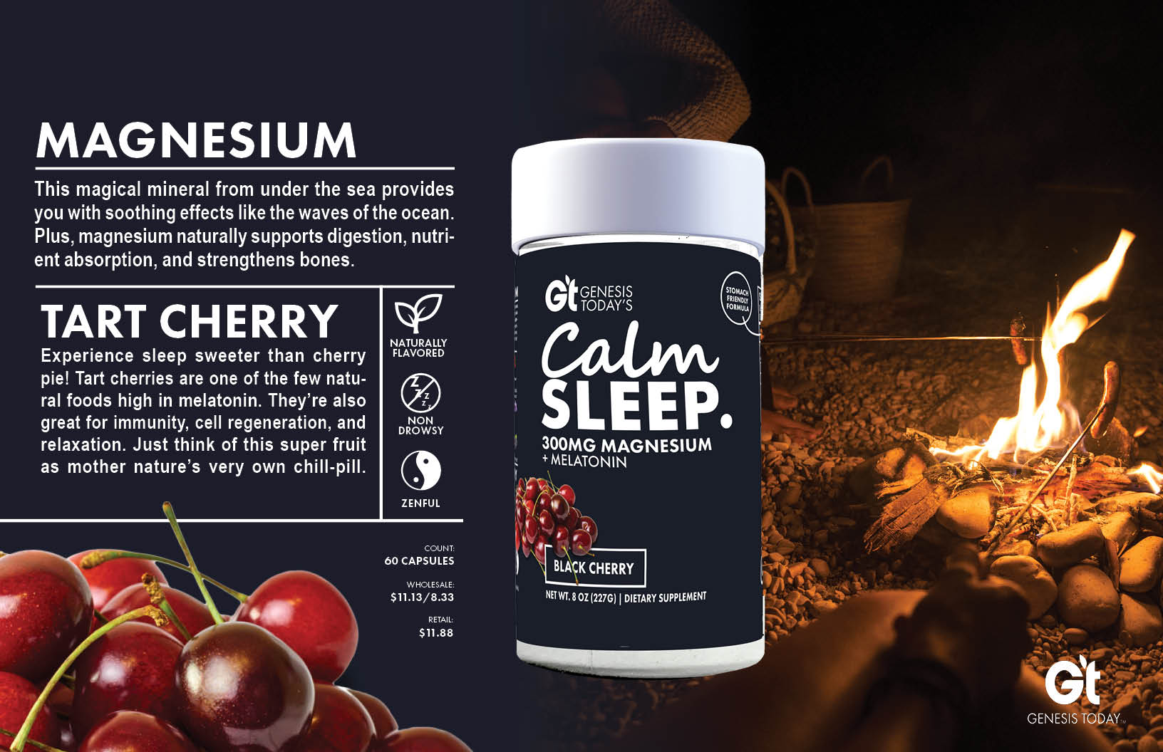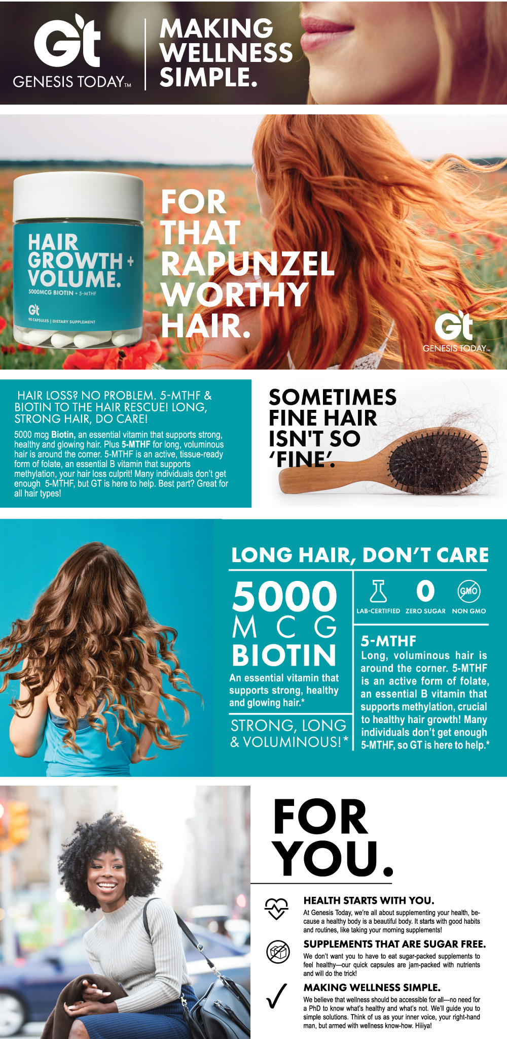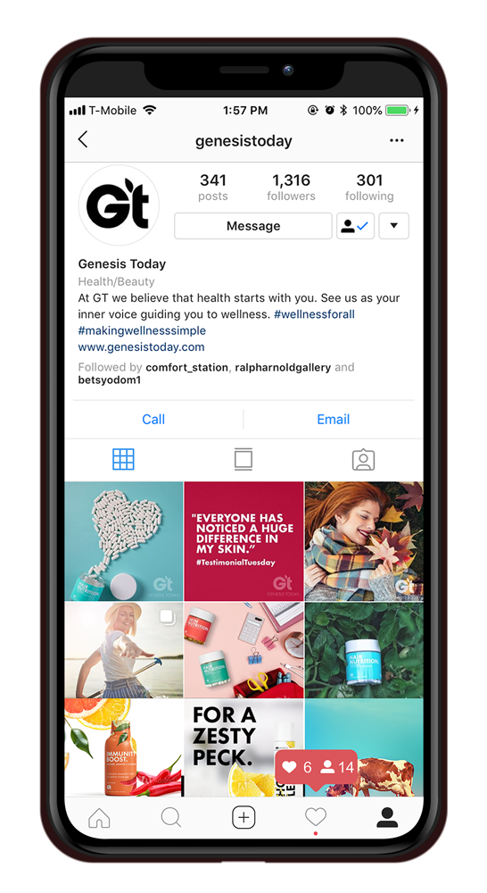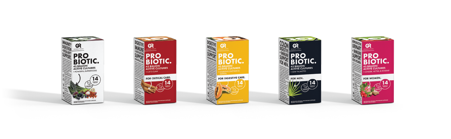When we took over the brand Genesis Today, it was a fresh slate to bring the existing company to modern times in design and product offerings. Along with a product developer, we repositioned the company into a 'Benefit-forward' concept that serves as a buildbord on shelves. Big bold font, vibrant color, and to-the-point positioning is what sets us apart in the now very contemporary industry.