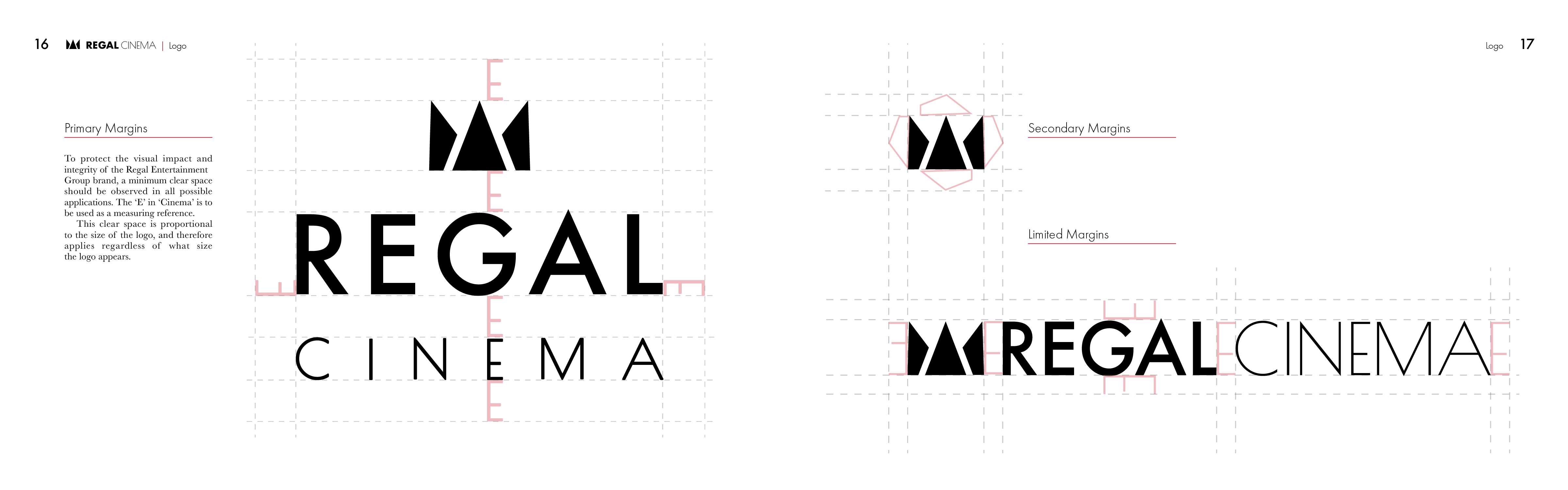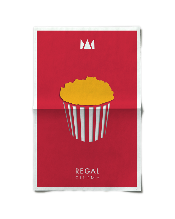 Regal Cinema has grown to become the 2nd largest theater chain in America. Since their foundation in the late 1980s, they have not updated their logo-mark to depict the innovations they are leading the competition in. With my process of their re-brand, I felt it was important to communicate what the movies are to a viewer.