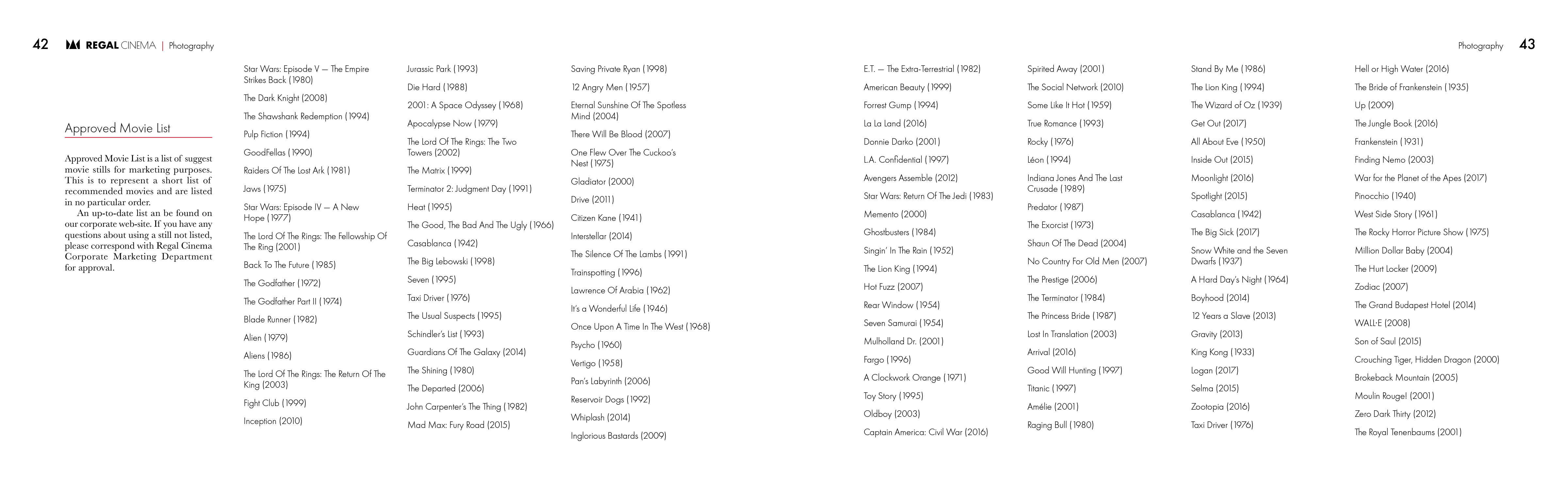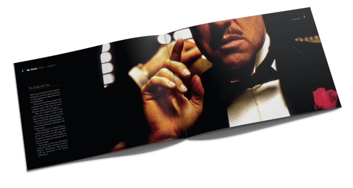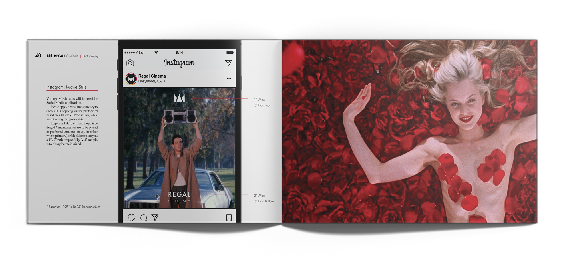As a case study, I gave this theater, that was once stuck in its founding year, a new and modern facelift! The new primary mark is represented in black and white; while color, pattern, and photography is used as a powerful design accent. It is important that the logo stands alone, yet it does not distract from the emotion and nostalgia of the movies and movie viewing experience. Photography, especially, is one of Regal’s new branding's most important design element. The logo being a location reminder of where they can feel the emotion of each photo—at the theater! The over-all re-brand has given Regal an up-scale feel, with simplicity. Allowing the theater to do what it does best- create memories, emotion, and joy!