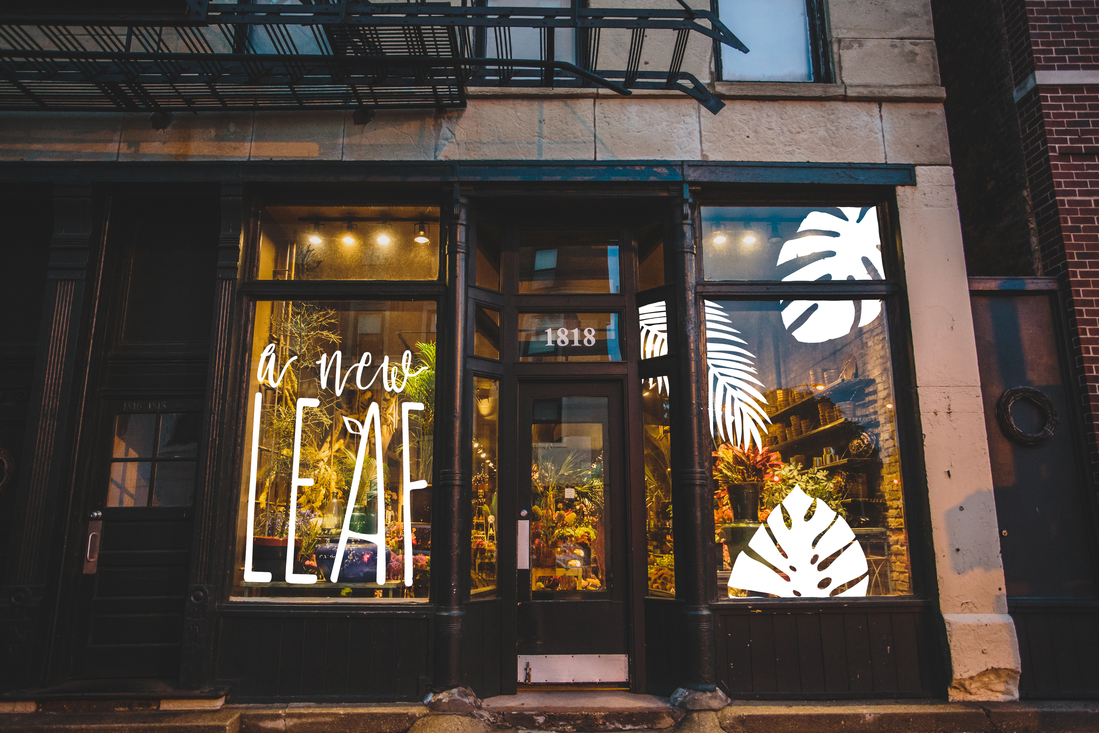 A hidden north Chicago gem,—A New Leaf is a multi-purpose business consisting of 3 floral shops and an event space with little brand identity. Their Event venue speaks loudly for their modern desire but lacks any essential branding materials. The little they do have is vastly out-of-date and adds no personality to this unique property. With multiple locations and business strategies, cohesive branding across all platforms will be essential in future growth