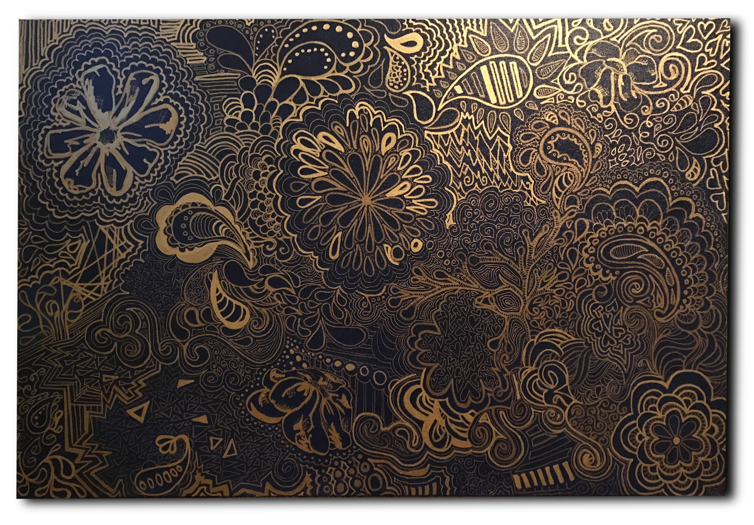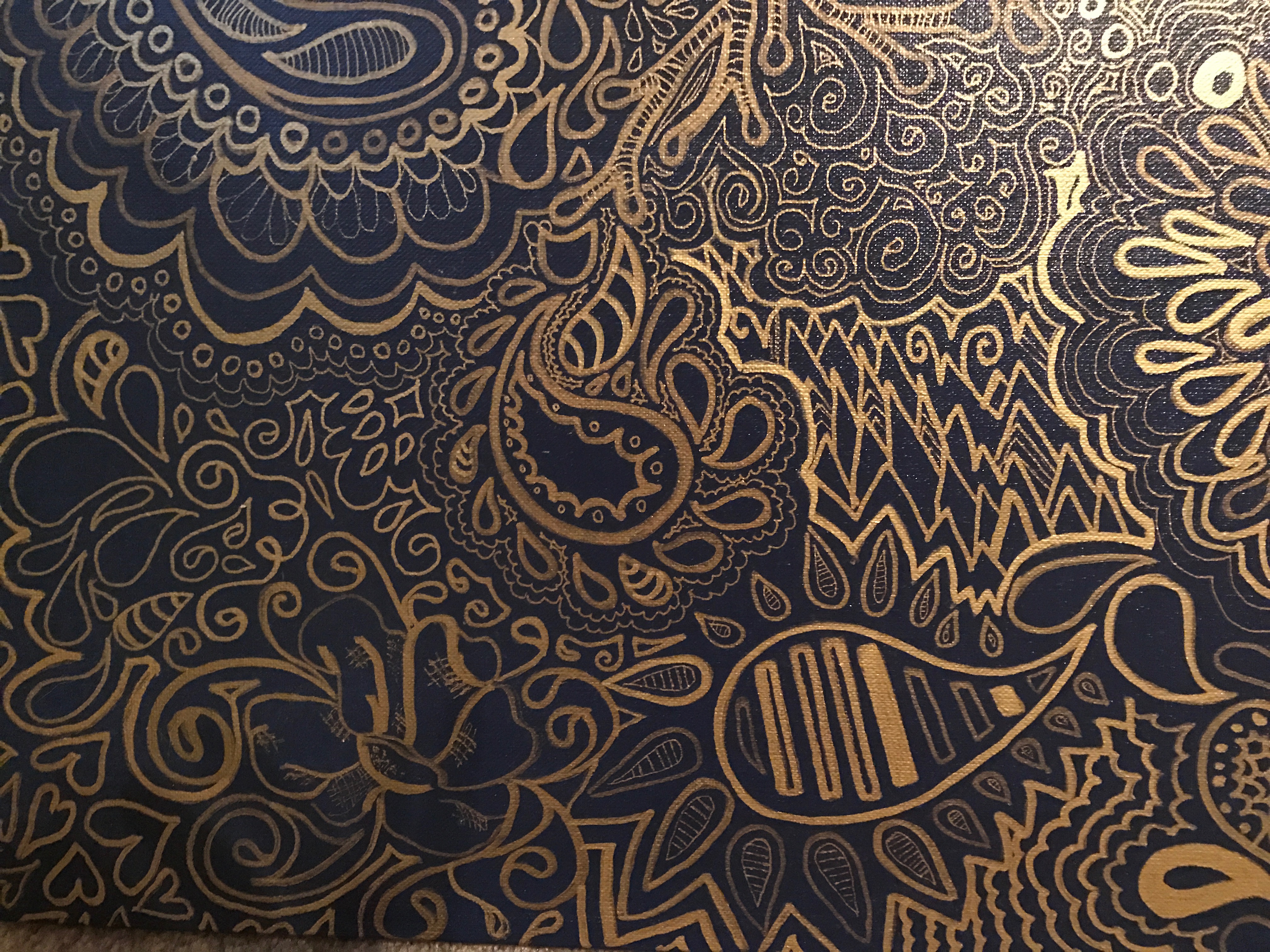 I used to watch my mother doodle on paper as she chatted on the phone catching up with her girlfriends. She would make these repetitive shapes, and go over them over and over making multiple lines and multiple shapes. I found a beauty in this rhythm and may have taken this as a way to relax as I entered high school making these mindless repetitive doodles all over my hand-outs. As I studied for my first undergrad degree, in Fine Arts, I challenged myself to bring my juvenile doodle to an elegant and fine arts standards. Larger scale, the better!