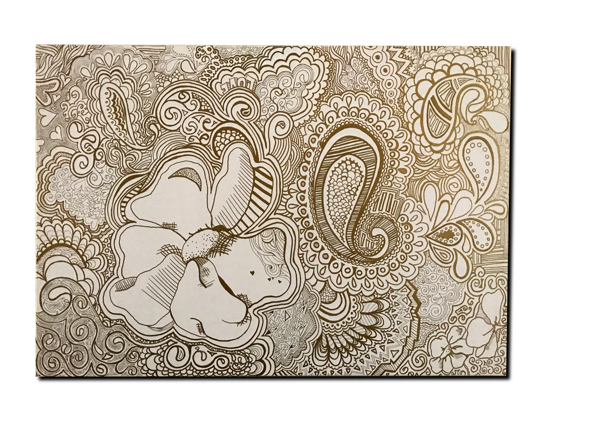 Each piece took me multiple hours to complete over the course of weeks. Creating an interesting blend of doodle style and mashup, depending on my current mood and what I was escaping in my zen doodle meditation.