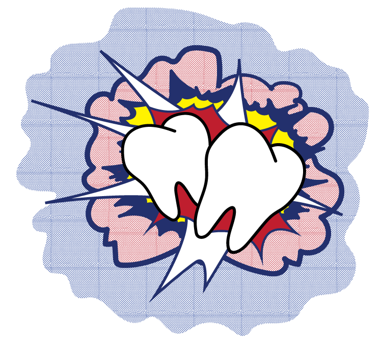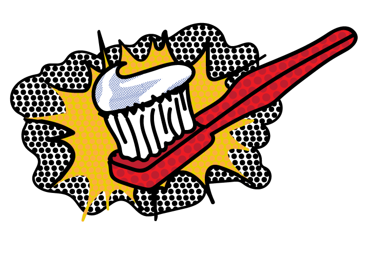 "Comic Book" was my clear verbal directions, so along with my fine arts educations, I went right to Roy Lichtenstein for inspiration. The challenge of very lightly touching the surface of dentistry without going cliche was a fun task. Taking experience from my day job at the time, as a personal assistant, I also stepped up to coordinate vendor project management on this and all other design projects from there on out. I contacted print facilities as Floss & Co.'s client representative and organized everything with them from quoting to final install.